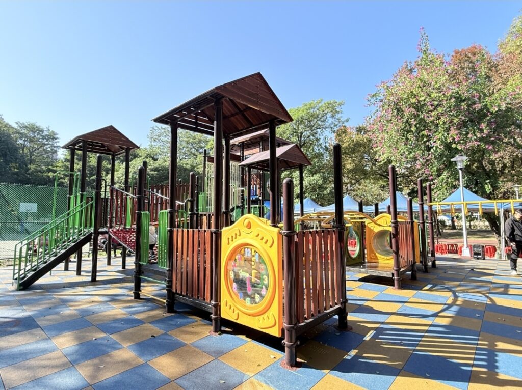 板橋區親子遊憩新地標「玫瑰公園」全新兒童遊戲場正式啟用!新建遊戲場工程以安全、實用及多元化設計為核心,結合深受孩童喜愛的多樣化的特色遊具,打造出一個兼具趣味與身心探索的公共休憩空間,於 1 月 14 日正式對外開放,歡迎大小朋友前來體驗。