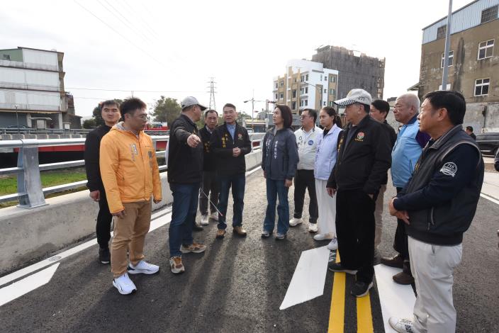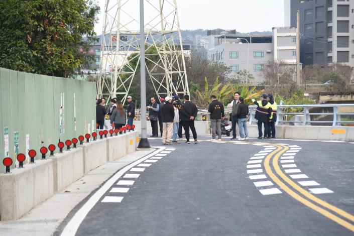 縣長鍾東錦多年前在縣議員任內即關注這項工程,經編列經費順利開工,目前已進入完工階段;鍾東錦15日由縣府水利處長楊明鐃與相關人員陪同,視察工程進度與施工品質,並了解竣工通車後的效益;副議長張淑芬、頭份市長羅雪珠與多位縣議員、代表、里長,也踴躍到場關心。