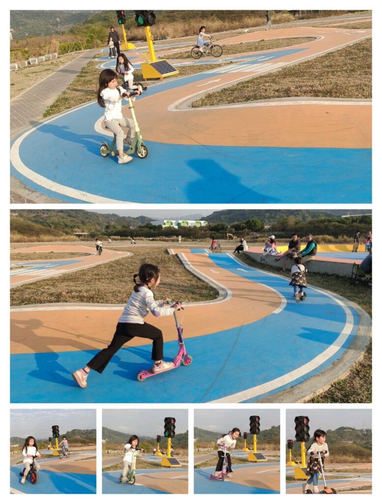 水利局說明,本案為回應地方建議並結合區域發展需求所推動的重要水岸活化工程,總經費約新台幣550萬元,規劃設置約2,500平方公尺滑步車道及滑板車廣場,鋪面採繽紛活潑設計,並融入紅綠燈、道路標誌等交通號誌元素,讓孩童在遊戲過程中自然建立交通安全觀念,也讓家長能安心陪伴,打造兼具運動、學習與親子互動功能的多元場域。