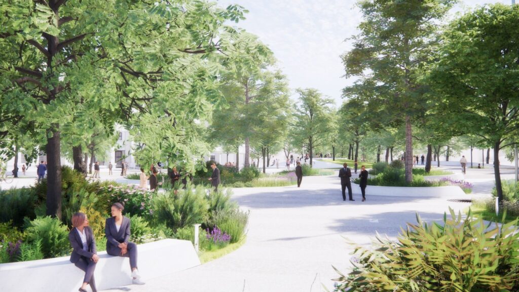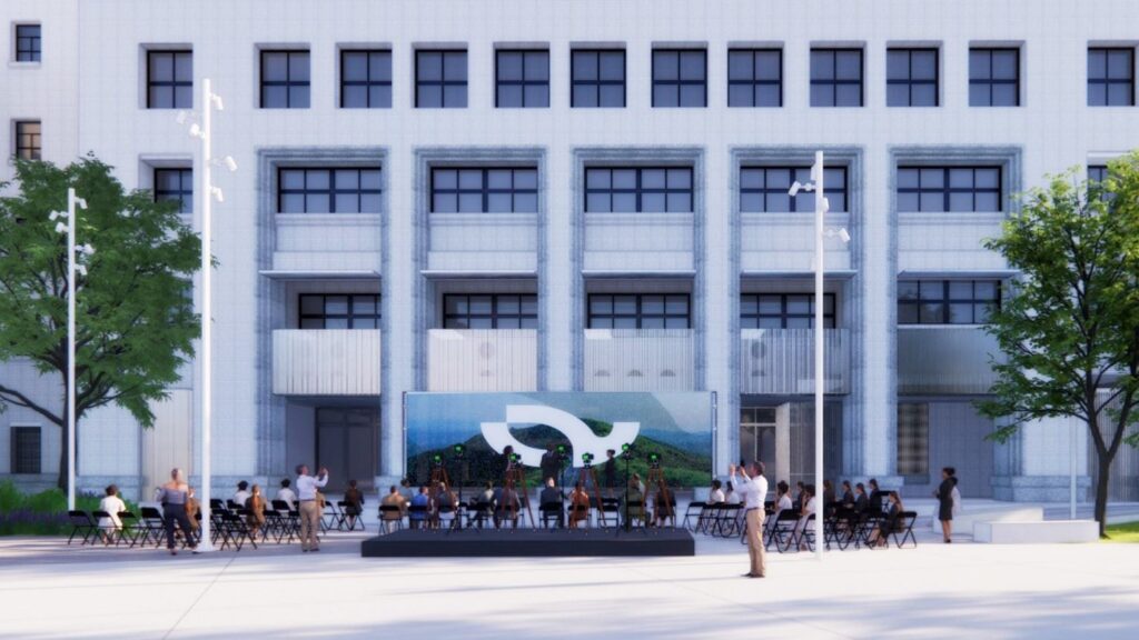 廣場內新增「林間聚所」等停留點,讓民眾可以在此散步、休息,提升公共場域親和力;縣府側廊延伸設置展演舞台,讓廣場具備洽公等候、舉辦記者會、展演等多元使用情境。