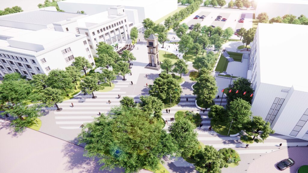 嘉義縣政府啟動「府會之心」鐘樓廣場景觀再造計畫,將縣府與縣議會之間約 9,570 平方公尺的開放空間重新整理,改善出入口動線與排水功能,讓廣場具備日常休憩與各式公共活動需求。