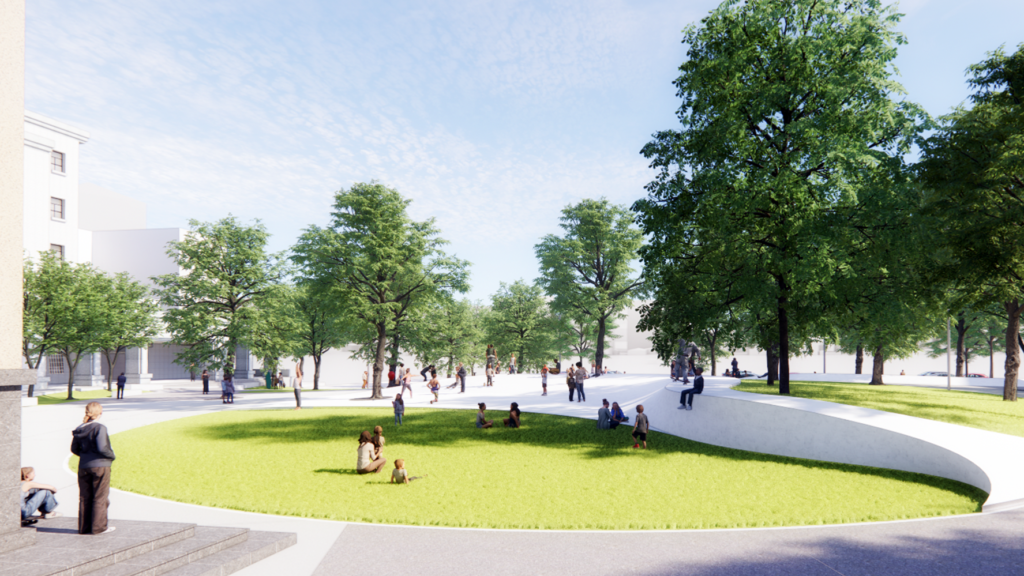 全案採公開競圖方式辦理,遴選新銳建築團隊「永哲制作」負責設計,工程將改善原有廣場高程不順與排水問題,重新整合縣府與議會兩側出入口動線,將原本通行為主的空間,調整為更適合停留、交流與辦理活動的開放廣場。