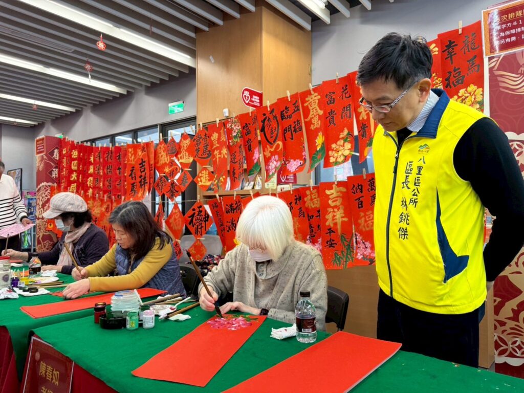 為迎接農曆新年的到來,新北市八里區公所於今(28)日舉辦「大師揮毫贈春聯」活動,現場墨香四溢、年味十足,吸引民眾踴躍索取大師手寫春聯及市府特製「馬祥厚運」春聯;不少民眾表示第一時間拿到市府春聯很開心,直呼「很有過年感」、「手寫很有溫度」,也稱讚公所佈置喜氣溫馨。當日並攜手八里國中同步辦理「115年孝悌勵學獎助學金頒獎暨學生春聯書畫比賽」,鼓勵學生以創作傳承書畫文化。