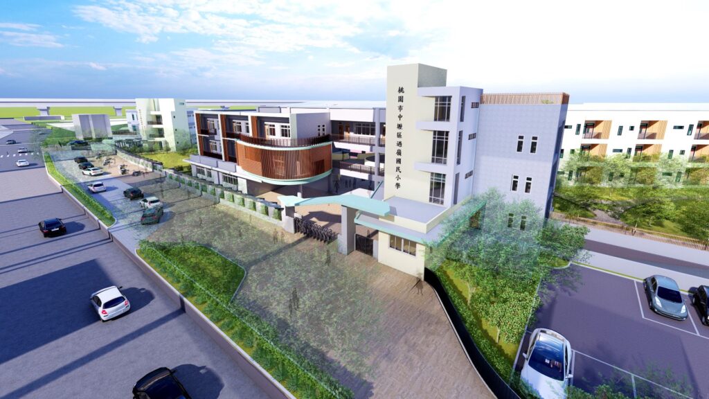 「桃園市中壢區過嶺國民小學新建工程」位於中壢區雙嶺段,基地面積約27,942平公尺,規模為興建3幢8棟建築物,包含非營利幼兒園暨附設托嬰中心、國小教學大樓3棟、行政大樓、圖書館、廚房及司令台等設施。校園並規劃運動場、綠地、生態空間及多功能教學場域,兼具生活、運動、自然探索等育才功能,並設置50席汽車及34席機車停放空間,營造安全舒適的校園環境。本案校舍共規劃普通班24班及特教班1班,可容納約706名國小學生;非營利幼兒園規劃5班,可容納約104名幼兒;另附設0至2歲公托中心,可收托約48名嬰幼兒,合計校園可服務人數約858人,充分滿足社區家庭不同階段的教育照顧需求。預計於116年8月優先完成非營利幼兒園建置,並於117年8月完成全案竣工並正式啟用。