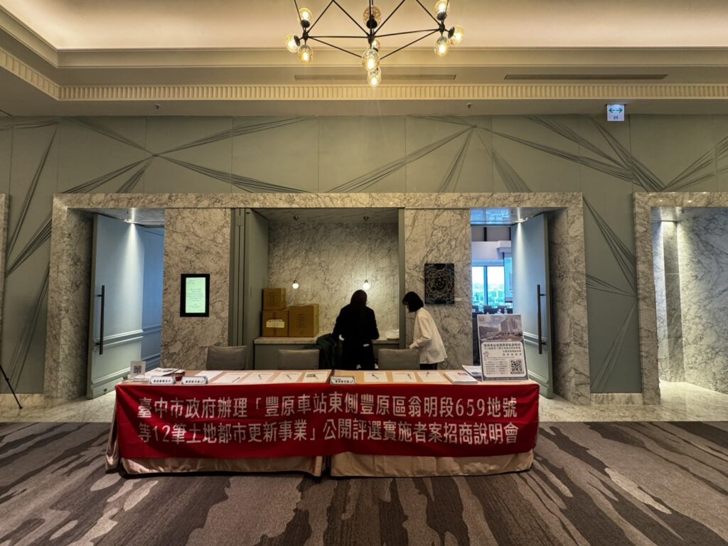 台中市政府首件公辦都市更新案邁向重要里程碑!市府都市發展局今(29)日下午3時於李方艾美酒店舉辦「豐原車站公辦都更案」招商說明會,吸引建設公司、營造業、金融壽險及都市更新專業團隊等超過20家潛在投資者踴躍出席,顯示業界對豐原火車站周邊整體發展潛力深具信心。立法院副院長江啟臣及市議員陳清龍亦派代表與會,表達對地方建設推動的高度重視。