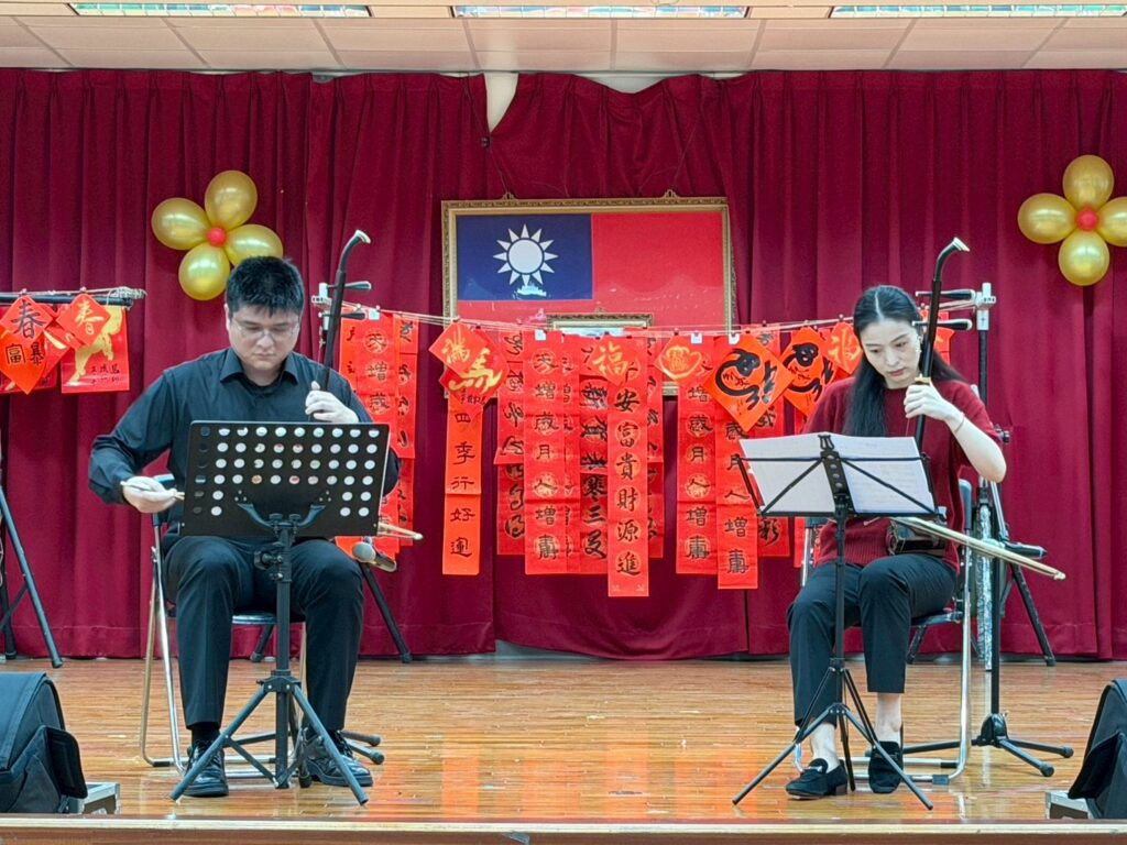 活動首日由永昌社區發展協會「湧泉樂坊」古箏與永吉國小口琴班跨世代聯演揭開序幕,古箏的清脆與口琴的悠揚交織出動人層次;隨後由國家音樂廳二胡首席洪瑋廷、張愷兩位大師,深情演繹《喜洋洋》與《青花瓷》等經典組曲,以穿透力十足的旋律為傳統年節活動注入現代藝術氣息。