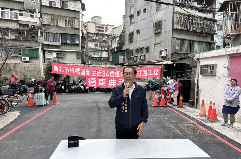 板橋區長陳奇正表示,新生街34巷原因設有台電變電箱,導致車輛無法通行至金華街。經新生里王保利里長協助協調地主,並由工務局新建工程處協議價購取得土地,遷移台電變電箱,公所順利完成道路瓶頸打通。此路段,規劃道路寬度為7公尺,採車輛雙向通行配置,並增設單側排水溝,有效提升區域交通便利性。也呼籲用路人行經該路段時減速慢行,於路口注意禮讓行人,共同維護行車安全。