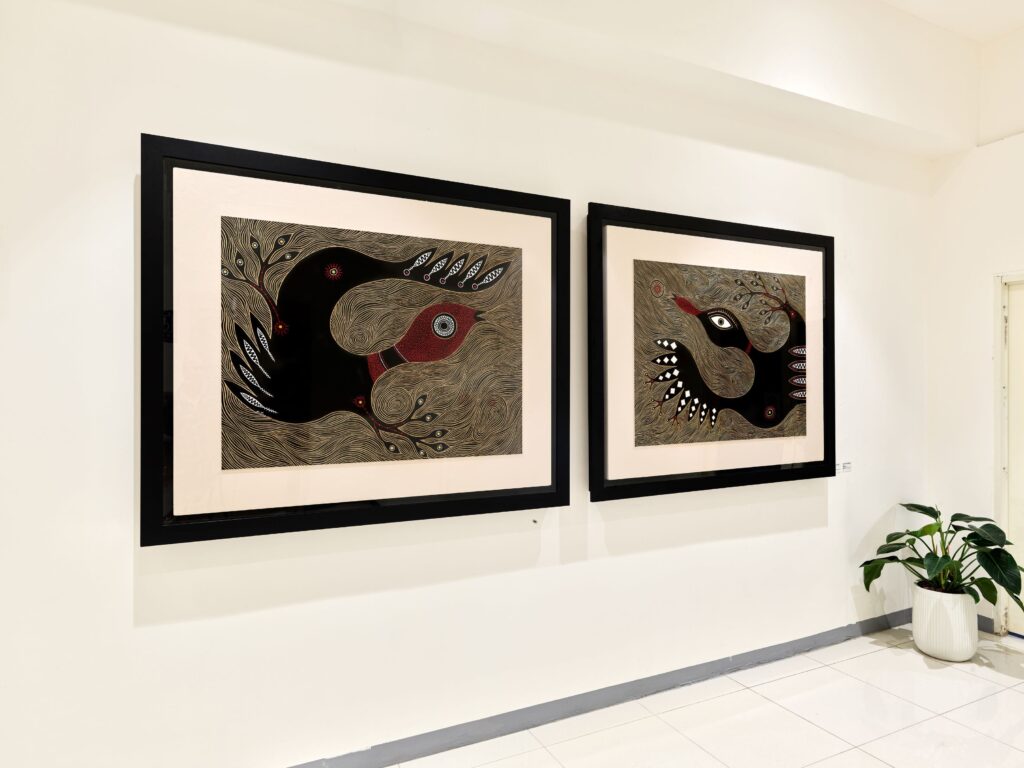 伊誕‧巴瓦瓦隆以木刻版畫呈現原住民文化精神;曾琬婷運用水晶押花創作空間裝置,展現細膩而詩意的視覺感受;張書瑋則以臺灣大理石進行雕塑創作,體現土地質地與當代造型語彙。