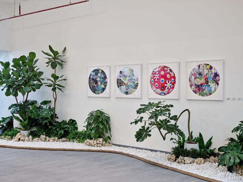 國際藝術家部分,草間彌生代表性的南瓜與高跟鞋主題作品,以及村上隆代表性的琳派風格版畫與雕塑作品,這些作品與簡約的建築風格相互對話,為整個空間注入藝術靈魂。