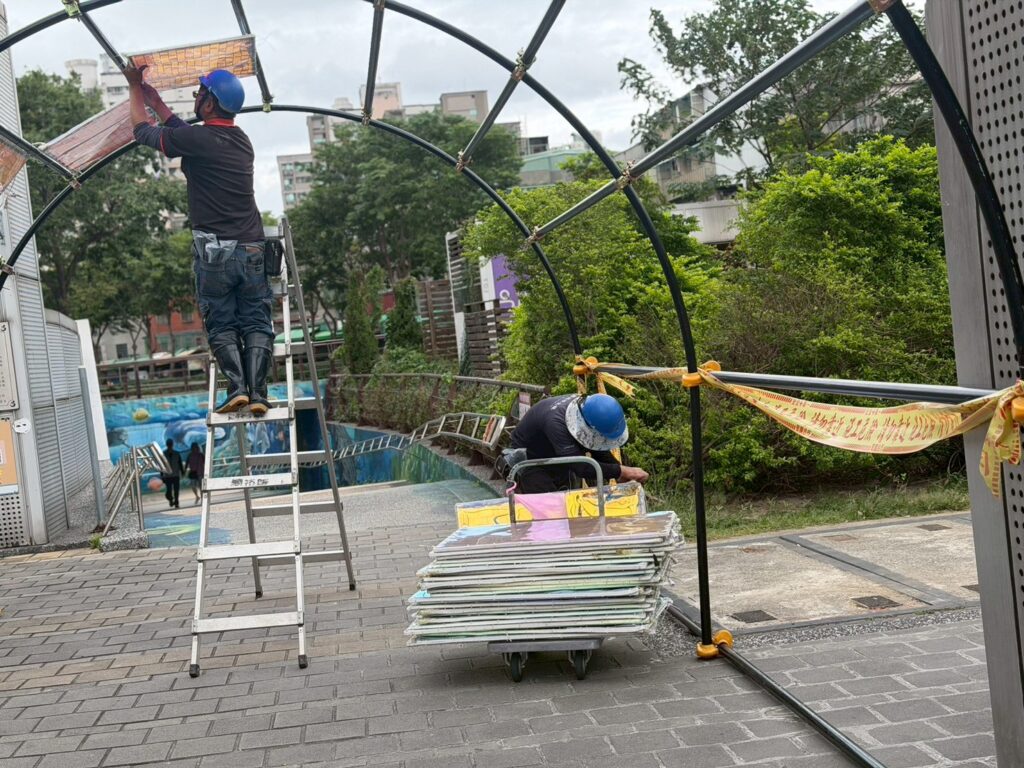 眾所期待的2026年新莊中港大排光雕展正如火如荼進行布展。為帶給市民最震撼的視覺饗宴,工程人員也加緊腳步安裝燈飾與測試。新北市政府水利局提醒,河廊布展期間,請遊客休憩散步時務必注意自身安全,並配合現場導引。