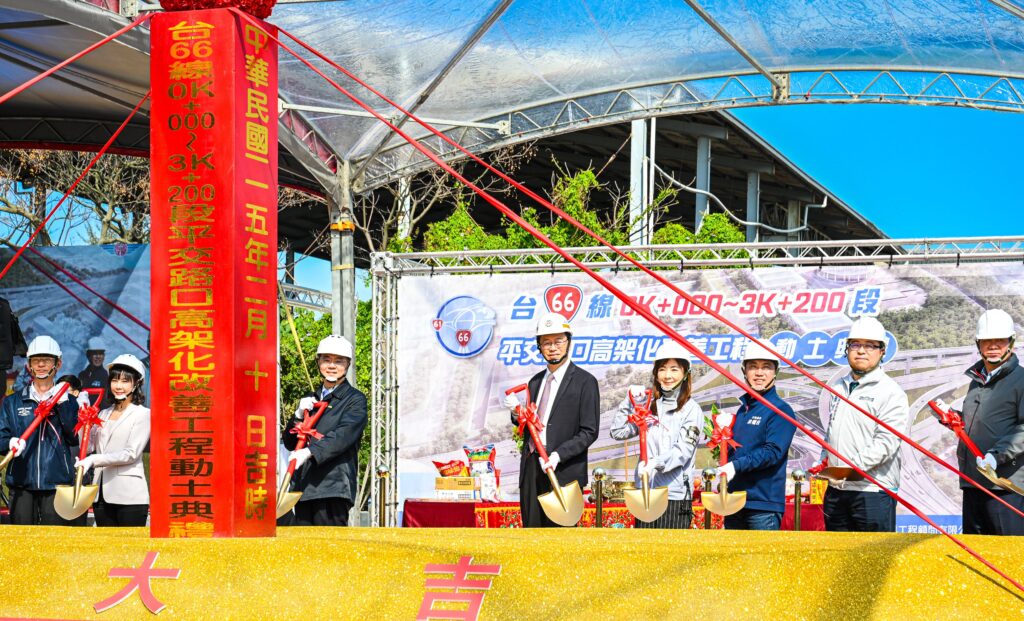 交通部長陳世凱表示,台66線平交路口高架化工程是桃園「三橫三縱」交通建設的重要里程碑,全案經費約91.77億元,完工後可有效改善平面道路車流混雜情形,降低路口衝突風險,全面提升行車安全與路網使用效率。