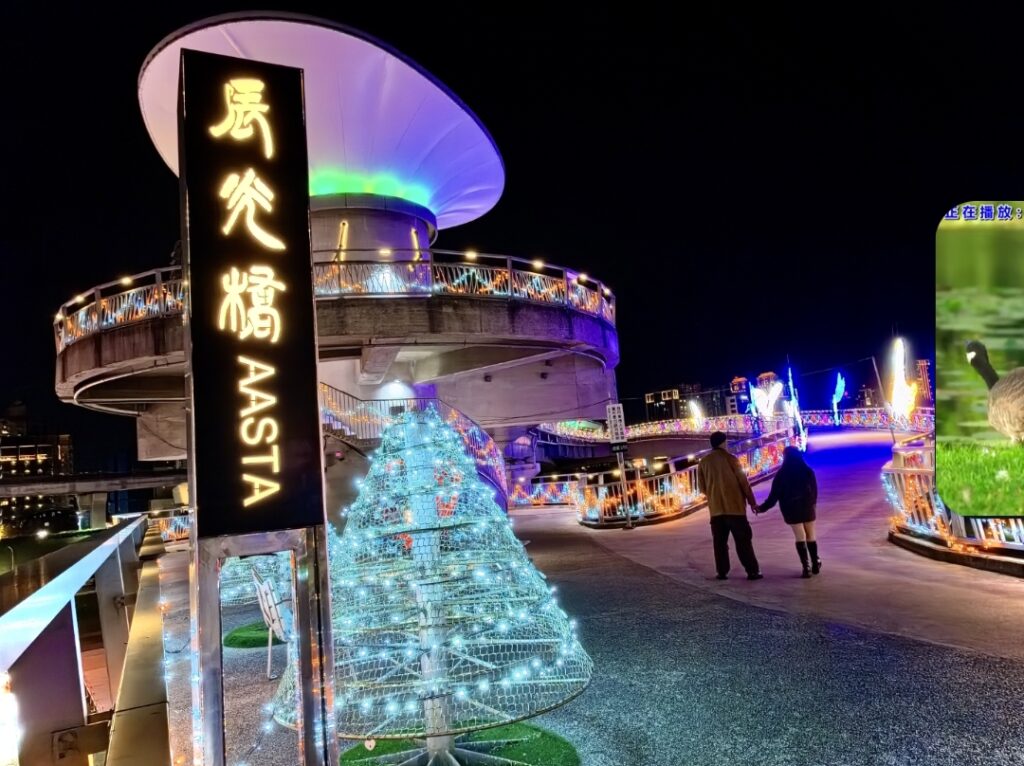 辰光橋位於三重雙捷交匯站,橋體以牛郎織女重逢意象為設計靈感,雙層雙曲線橋台宛如蜿蜒銀河,象徵跨越時空的相遇與相守。每年情人節期間,辰光橋光雕展皆與新北燈會展期相互呼應,已成為新北市夜間最具人氣的浪漫地標之一。