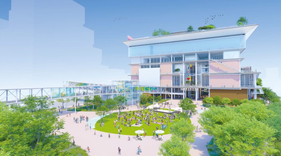 新板特區以「超級浩市達(SUPER HOPSCA)」作為整體發展願景藍圖,強調高運量交通、商務辦公、購物娛樂、公共開放空間與行政服務等機能整合,透過空橋系統與立體動線串聯城市各項核心設施,打造高度整合的都市生活圈。此次國家兒童未來館之推動,不僅補強公共文化與親子友善服務機能,更讓十餘年前提出的整合型城市藍圖逐步走入市民日常生活,使新板特區由構想邁向具體生活實景。