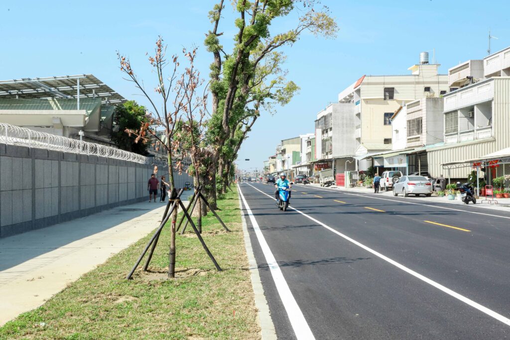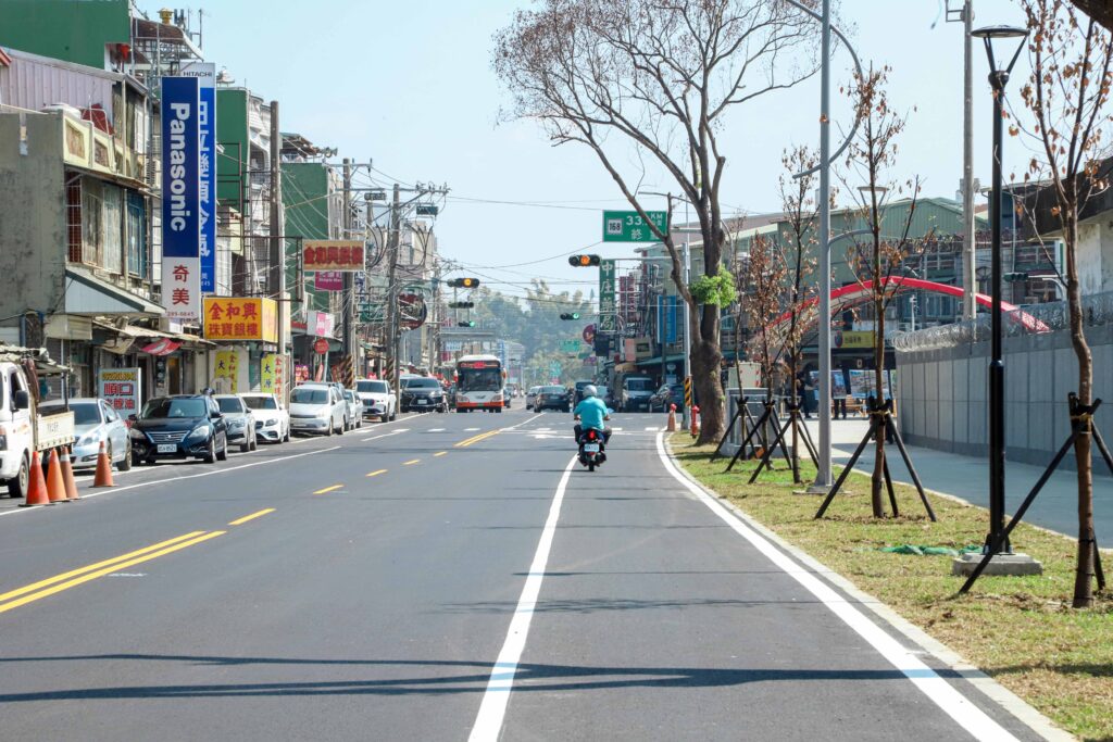 同時將電桿及管線地下化,增設LED路燈與完善標誌標線,改善夜間照明不足及視線受阻等狀況,也讓行人與車流分流更清楚,提升通行安全與道路景觀。