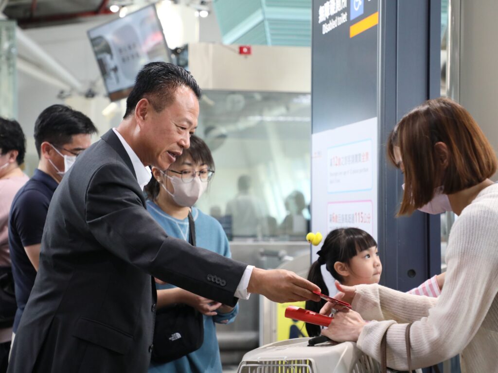 乘客們還沒出站就聽到喜慶的年節音樂迎接他們返鄉,不少民眾拿到紅包後開心地與縣長合照,現場氣氛熱鬧不已。
