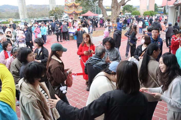 今天上午雖然下雨,但民眾熱情不減,各廟宇都擠滿走春祈福的鄉親,大家見面都互道恭喜,尤其領到縣長、縣長夫人、副縣長的福袋,更笑得合不攏嘴,處處充滿過年熱鬧的氣氛。