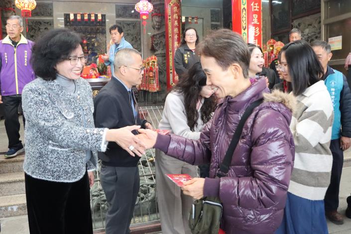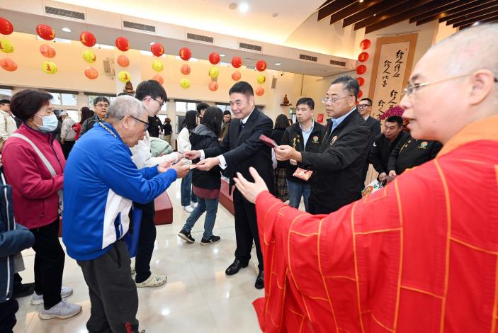 苗栗縣長鍾東錦年初一到廟裡祈福並發放馬年福袋向鄉親拜年