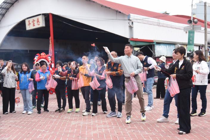 啟動儀式由屢獲佳績的在地學子表演扯鈴技藝,以及阿貴師醒獅團的戰鼓和祥獅獻瑞熱鬧揭開序幕,並分別獻給縣長鍾東錦、議長李文斌象徵好彩頭和旺旺來的菜頭與鳳梨,會場瀰漫熱鬧的元宵氣氛。