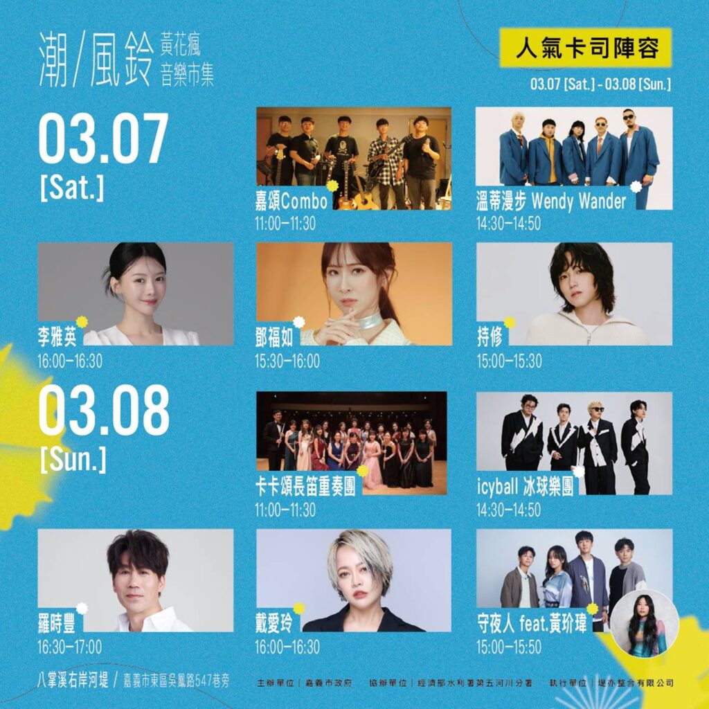 嘉義市「潮風鈴・黃花瘋音樂市集」3/7、3/8浪漫登場 邀您走進金黃花海,共赴春日音樂盛會