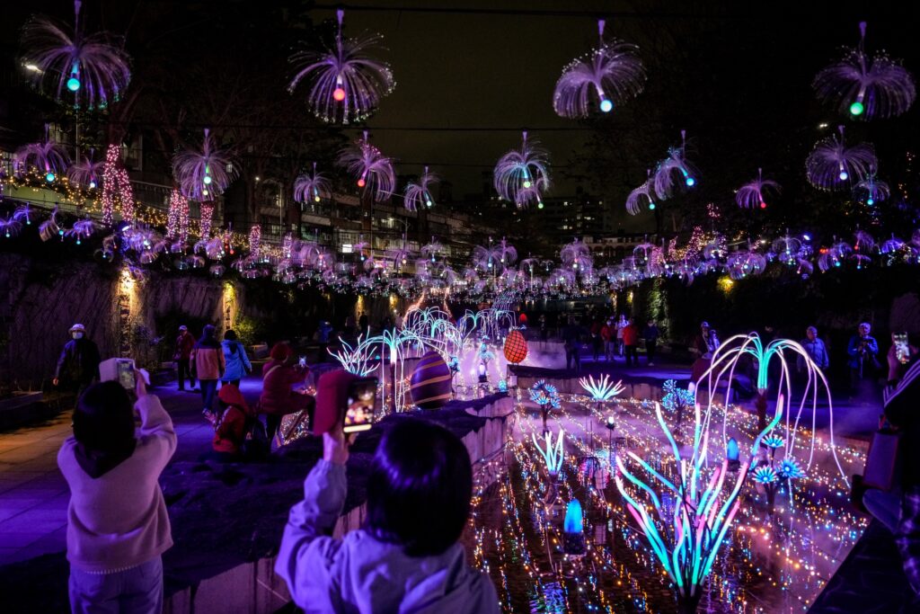 參與開幕活動的李小姐表示,今晚的光雕展讓人彷彿走進星河之中,星光燈飾沿著河廊延伸,與夜色中的中港大排相互輝映,在都市中能看到如此夢幻的景象令人驚豔,尤其高大的樹燈十分吸睛,好拍又好看,令人印象深刻。