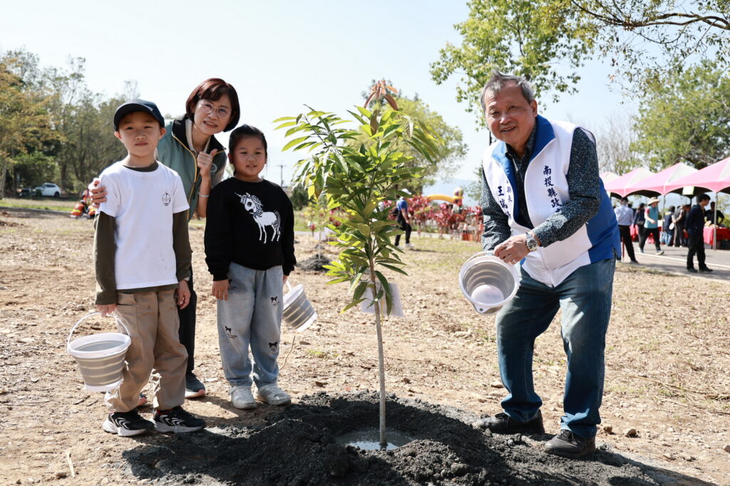 由縣政府與農業部林業及自然保育署共同舉辦的「原地扎根•韌性森活」南投縣植樹節活動,7日上午在埔里福興溫泉區熱鬧展開,現場除結合宣導、農特產品展售外,還有限量手作多肉植物及闖關遊戲贈樹苗等活動,副縣長王瑞德也帶領大家一起動手種下梭羅木及肖楠等台灣原生種樹苗,期望未來能打造出綠意盎然、永續發展的福興溫泉區。