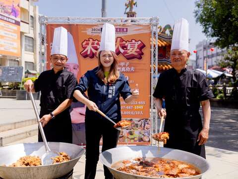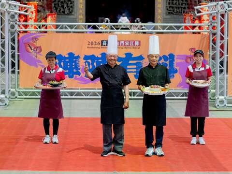 百年陣頭文化,高雄閃耀傳承!備受全國矚目的「2026高雄內門宋江陣」將於3月21日至4月5日,於內門紫竹寺盛大登場。高雄市政府觀光局今(17)日舉辦記者會,開場由「內門國中宋江陣」及「宗興武藝創意宋江陣」帶來熱血沸騰的尬陣交流,並由觀光局長高閔琳與內門紫竹寺主委劉銀城共同為宋江陣頭旗結綵,宣布「2026高雄內門宋江陣」系列活動全面啟動。每年讓饕客引頸期盼的「宋江大宴」,今年由神明欽點的掌鼎總舖師薛志龍率領徒弟團隊聯手端出澎湃辦桌佳餚;其父薛清己,為內門「四合一」辦桌文化重要推手亦親臨現場,展現精湛廚藝世代傳承以及高雄地方飲食文化的深厚底蘊,誠摯邀請海內外旅客前來高雄內門參香祈福、參與遶境活動,欣賞宋江陣頭、為參賽隊伍加油,品嚐「總鋪師經典台灣料理「宋江大宴」辦桌菜,春季旅遊,首選高雄!