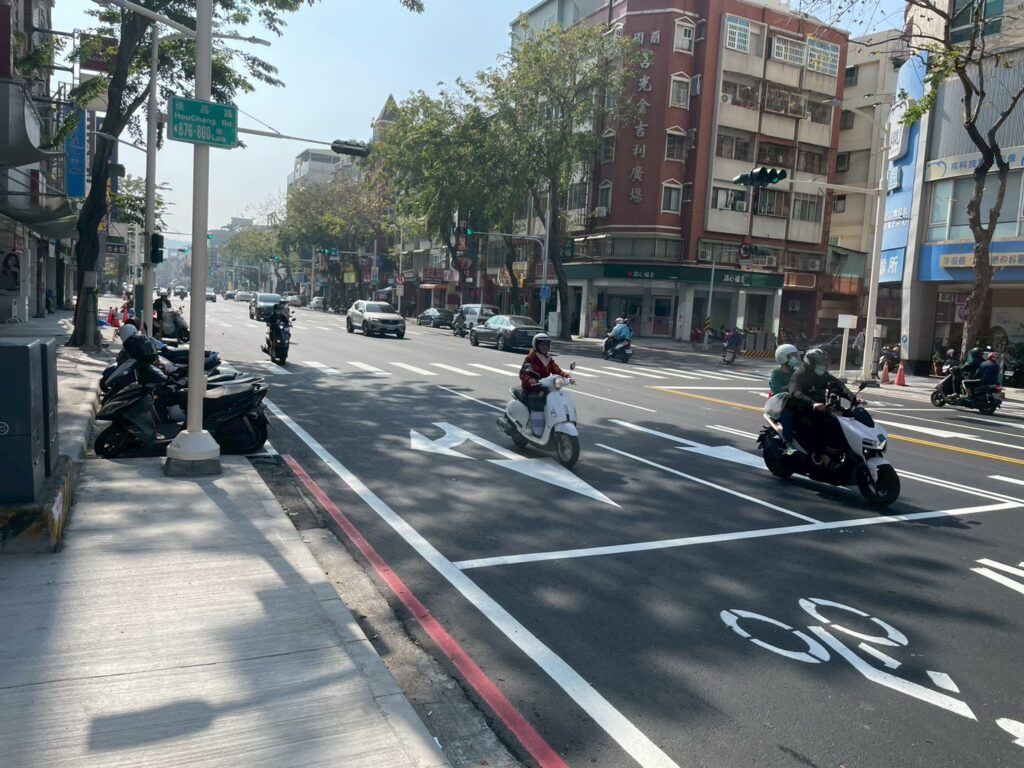 道工處補充,除鋪面改善外,亦強化通行友善與防護設計,在人行方面,重新規劃動線,於莒光國小大門前設置實體通學道,提供安心接送停等空間,擴大街角並調整行穿線位置、設置無障礙斜坡、整併公共設施帶;在車行方面,調整標線增設左轉車道、路面邊線,達到分流、導引效果,減少行車衝突,另新設路燈採高低矮燈加強照明,進一步提升通行安全。