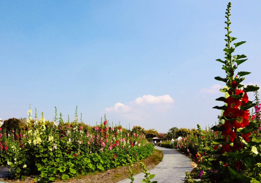 2026年員林蜀葵花季花田總面積達8,000平方公尺,近萬株的蜀葵花,超過30種花色一次綻放。蜀葵花因花序可持續向上生長、開花,最高可達約2公尺以上,因此又稱「一丈紅」或「花中巨人」。
