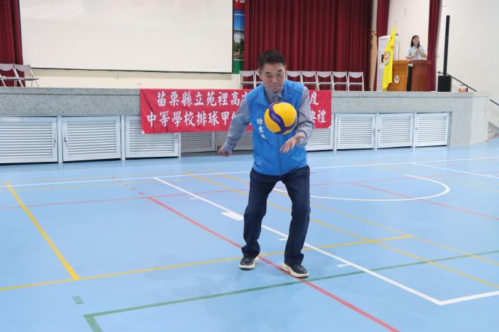 苗栗縣立苑高於23日上午舉辦「HVL高中排球甲級聯賽決賽」授旗典禮,縣長鍾東錦特別頒贈加菜金新臺幣3萬元,勉勵選手在賽場上全力以赴、為校爭光、為苗栗增榮。縣長恭賀苑高男排連續兩年闖進全國前六強,並肯定球員在永信盃、華宗盃及和家盃等賽事中屢創佳績,展現堅毅不拔的精神與團隊合作的力量。