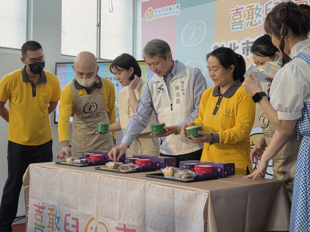 因中和舊廠區改建,「新北市喜憨兒庇護工場」正式搬遷至新莊新址。新北市勞工局今(24)與喜憨兒基金會攜手舉辦喬遷活動,局長陳瑞嘉、基金會台北區副執行長楊琇雁、議員戴湘儀及庇護員工們,共同包裝紀念禮盒,同時議長蔣根煌、議員蔡健棠及陳世軒也特別派代表到場致意,祝福庇護工場在新莊重新扎根業績能夠蒸蒸日上。