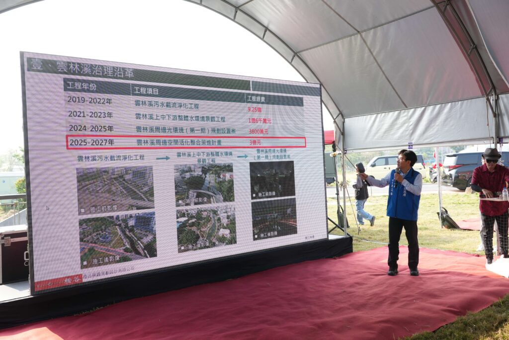 水利處長許宏博指出,雲林溪過去已完成三期整治,總經費約10.85億元,奠定良好基礎。此次推動「雲林溪2.0」,再投入3億元辦理7項景觀工程,分為4標同步施工,自今年3月起陸續開工,除部分建築工程預計於明年完成外,其餘工程可望於今年內陸續完工。