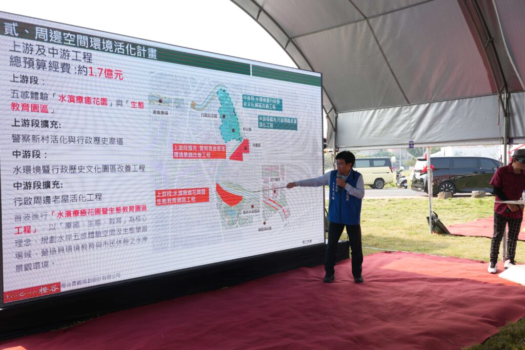 此外,中游段將陸續推動「警察宿舍聚落」活化及「行政歷史文化廊道」建構。透過老宿舍整修再利用,規劃活動空間與主題遊戲場,並串聯兒童館與周邊設施;同時以行啟紀念館為核心,整合歷史場域、推動文化資產保存,延續城市記憶。