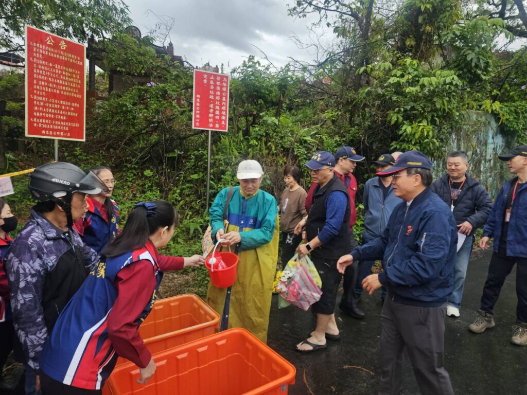 新北市政府消防局第四救災救護大隊為防範清明期間墓地火災發生,結合當地區公所及防宣義消規劃4月4日及4月5日於轄內9處公墓實施駐點勤務,並提供水桶及水袋供掃墓民眾使用。