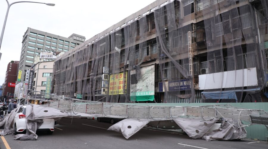 中央市場鷹架今(22)日下午因強風倒塌, …