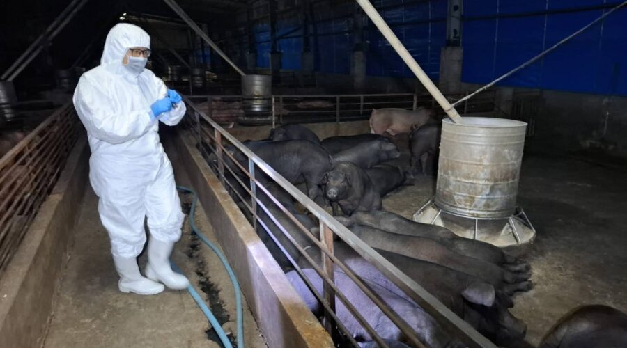 台中市梧棲區一處養豬場,近期發生豬隻陸續 …